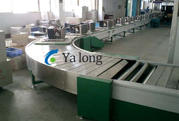 II. In the automated conveying system for air conditioning production, the double-speed chain conveying line and the roller conveying line are two core equipment. They play a key role in different links based on their respective characteristics, jointly realizing the efficient flow of air conditioners from component assembly to finished product assembly. The core assembly links of indoor and outdoor units of air conditioners (such as evaporator/condenser installation, compressor fixing, electronic control box assembly, shell splicing, etc.) mainly rely on double-speed chain conveyor lines. The size of the tooling plate can be customized according to the air conditioner model to ensure stable load bearing of the workpiece. For large weight (50-150kg) workpieces such as air conditioning outdoor units and finished machines, when warehousing and transferring them across regions in the workshop (such as from the assembly line to the testing area and packaging area), a power roller line is commonly used to achieve contactless transportation to reduce workpiece wear.